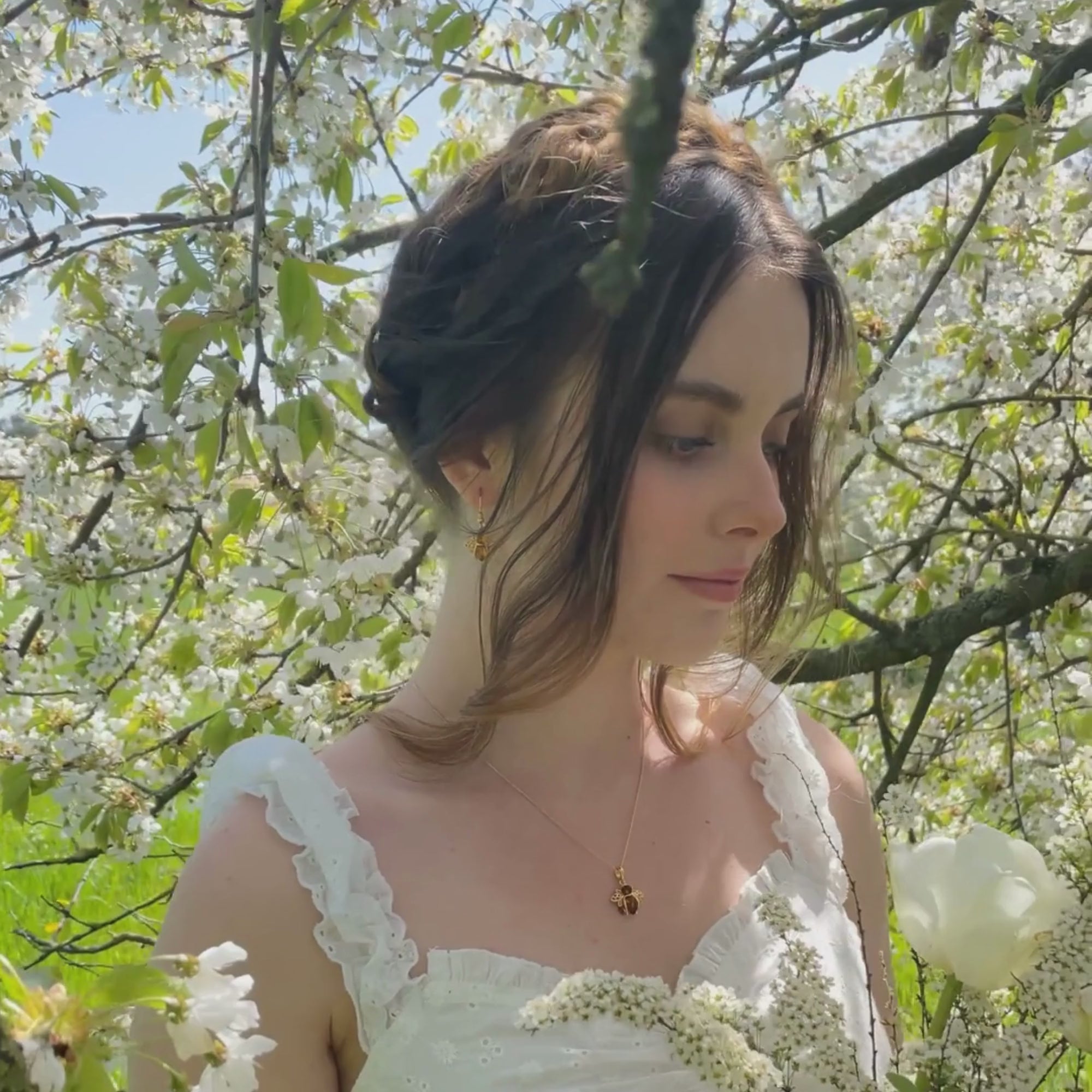 Kraftvoller und zugleich extravaganter Ohrschmuck, der Deine Liebe zu den kleinen und doch so wichtigen Tieren in unserem Ökosystem zur Schau stellt – das sind unsere Ohrringe Bernstein-Biene. Die einzigartige Cognac-Farbe des Bernsteins bringt deine Augen zum Leuchten. Wenn Du auf der Suche nach ergänzendem Schmuck zu diesen tollen Ohrringen bist, empfehlen wir Dir die passende Kette Bernstein-Biene.