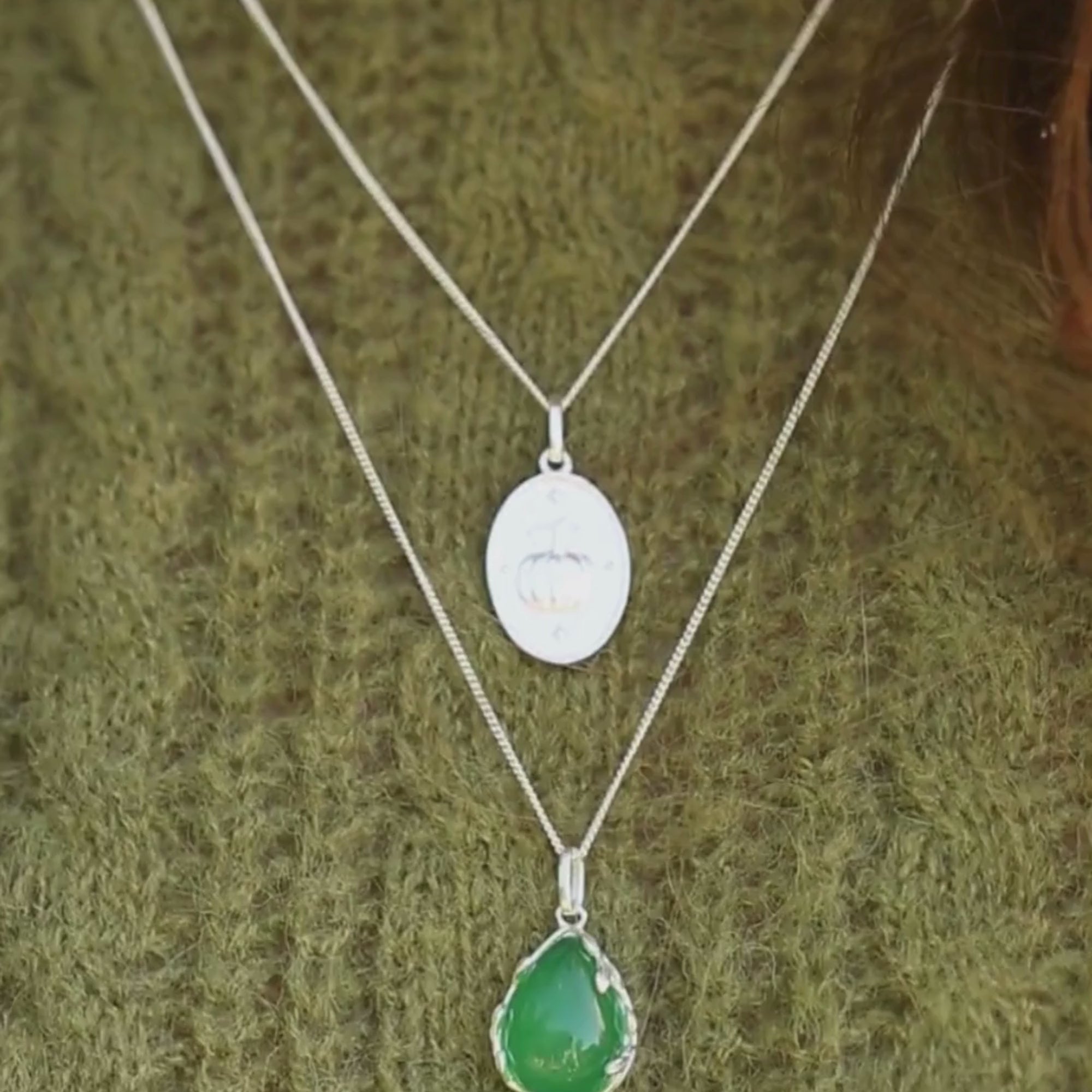 Kaum eine Bodenfrucht symbolisiert den Herbst so gut wie der Kürbis und Fliegenpilz. Genau deshalb ist unsere Kette Kürbis & Fliegenpilz Dein perfekter Begleiter für die gemütliche Herbstzeit. An der zarten Kette hängt ein ovaler Anhänger. Auf einer Seite ist ein Kürbis abgebildet, auf der anderen Seite ein Fliegenpilz. Je nach Deiner Tagesstimmung kannst Du die Kette nach Lust und Laune wenden.