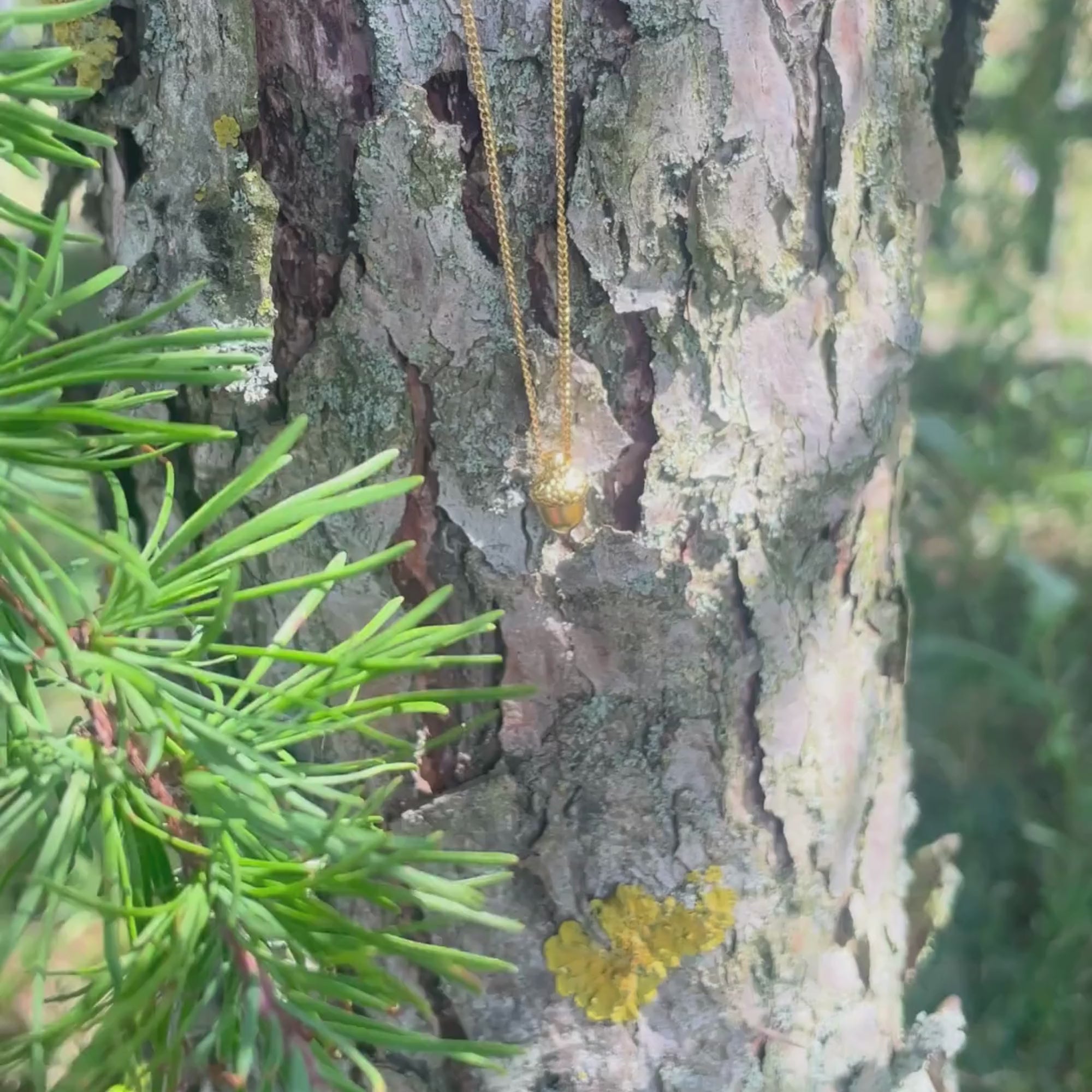 The gold-plated necklace flatters the décolleté with a gold-plated acorn-shaped pendant and a delicate, gold-plated anchor chain. The golden acorn is particularly captivating thanks to its fine craftsmanship and attention to detail.