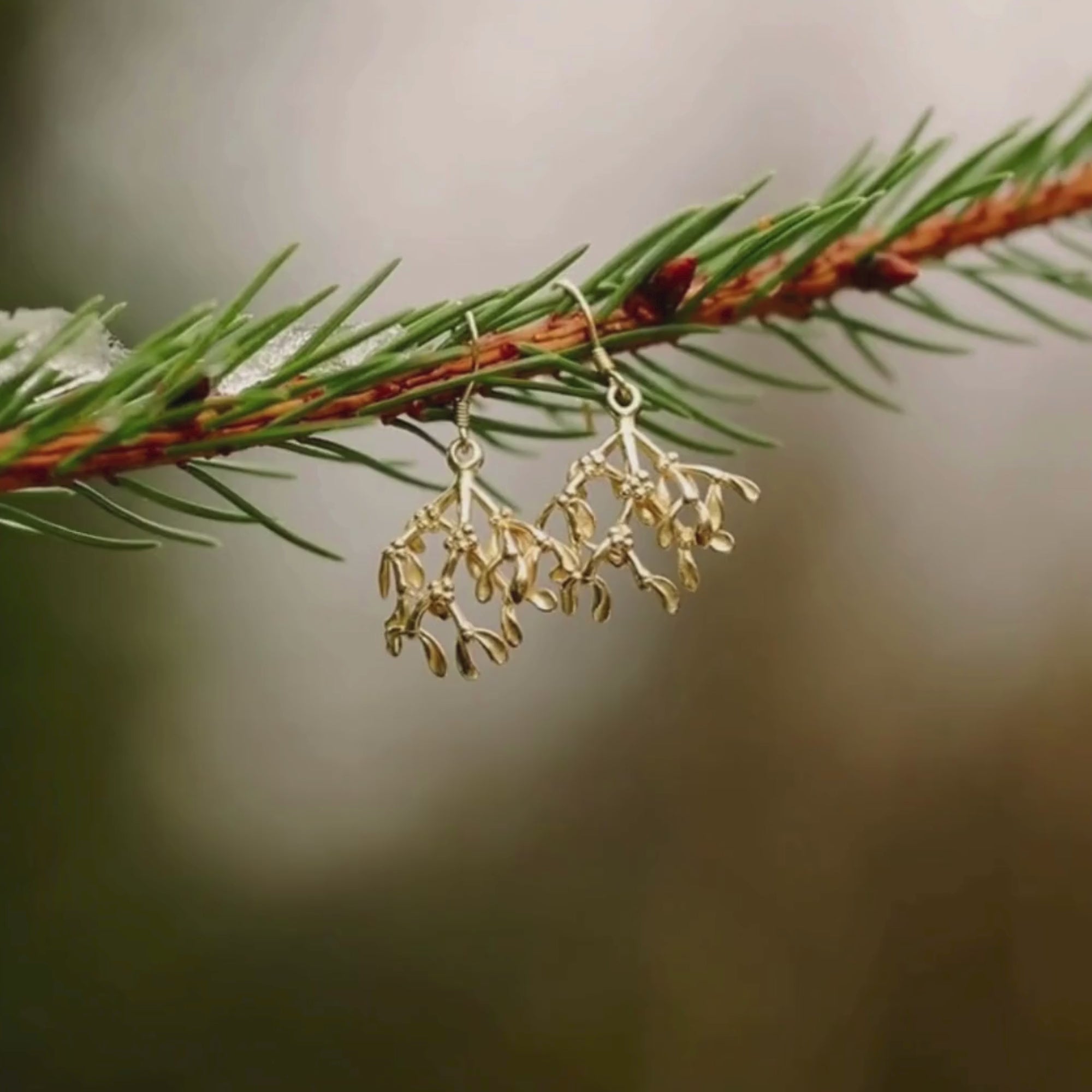 Happiness, harmony, and eternal love – the mistletoe represents all of these things. Our mistletoe earrings combine a unique Christmas look with a special message. The mistletoe hangs from a simple earring and captivates us with its vibrant golden color, perfectly suited to the cozy Christmas season. Complete your Christmas look with our matching mistletoe necklace.