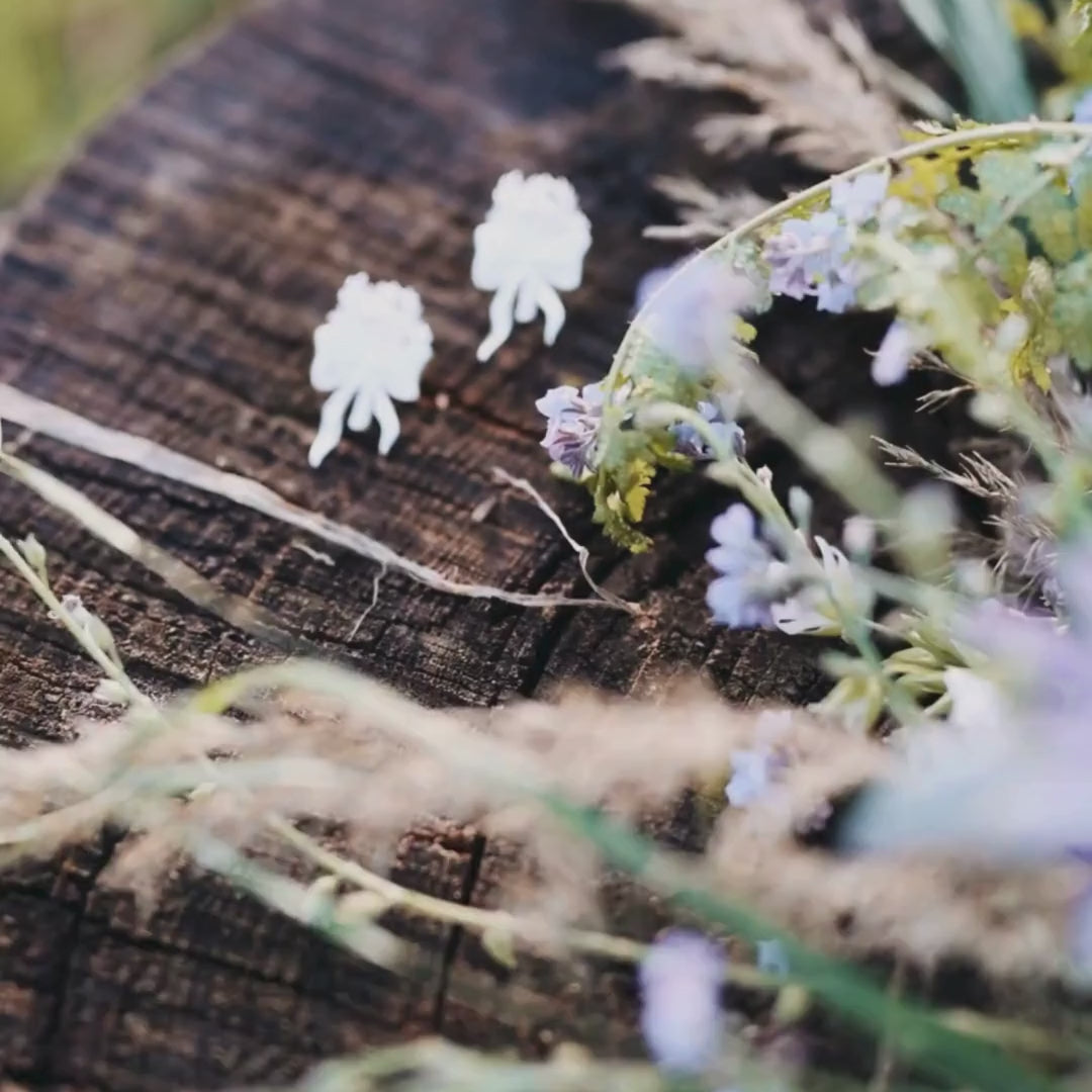 Stud earrings that impress with their sweet and playful look and showcase your love of summer and flowers – these are our Wildflower Bouquet stud earrings. A striking bow holds a bouquet of various wildflowers and plants found in nature during the summer. These stud earrings remind us of pure summer lightness.