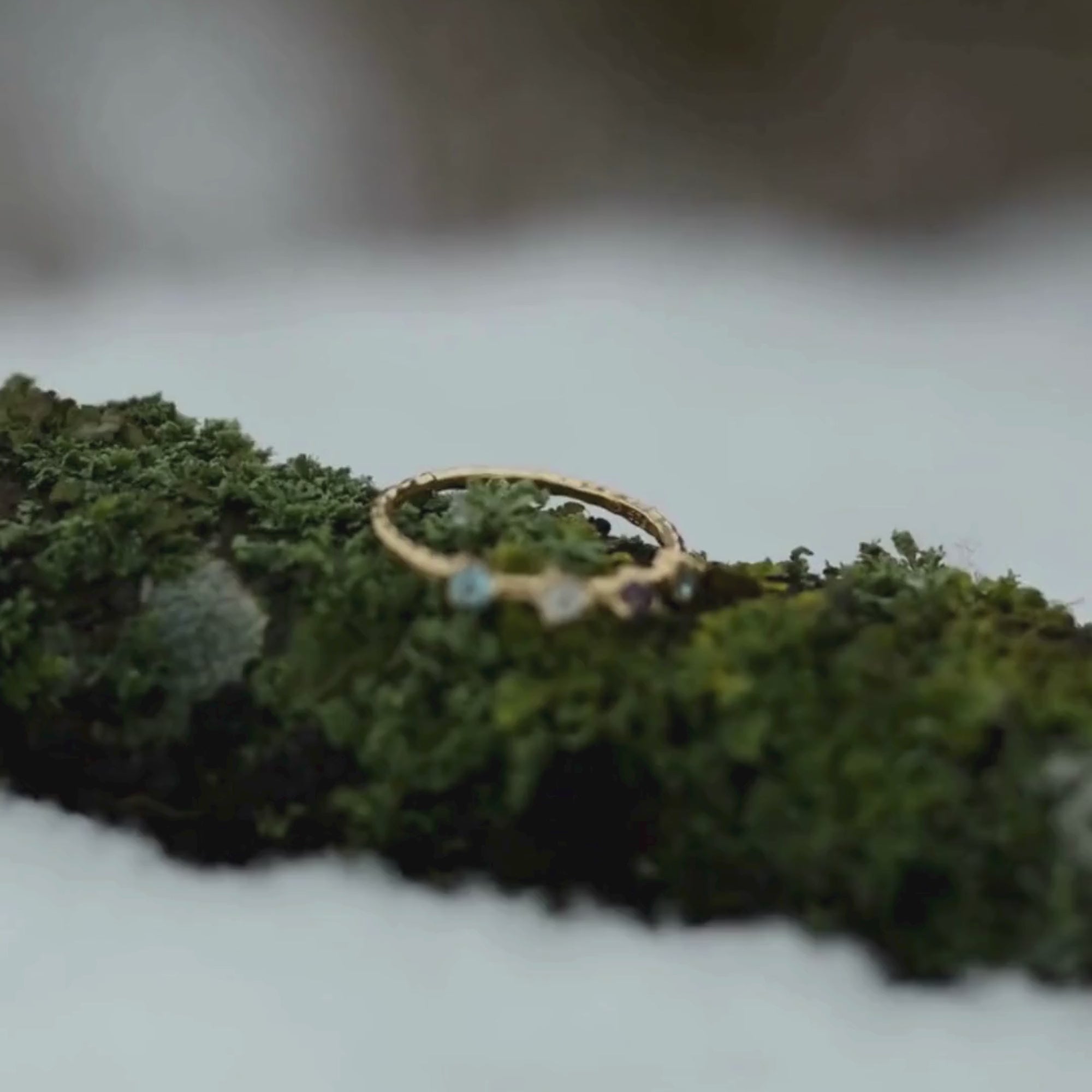 An verschiedene Schattierungen von Wasser erinnert unser Ring Maremi. Von hellblauen Bergseen, Schaumkronen bis zum tiefen Wasser eines Ozeans. In den filigranen Ring sind vier kleine Edelsteine eingefasst, welche in verschiedenen Farben funkeln. Der dunkle Lolith, was sich übrigens aus dem griechischen Wort für violett ableitet, bildet einen wunderbaren Kontrast zu dem hellen Mondstein und wird von zwei Topas eingerahmt.