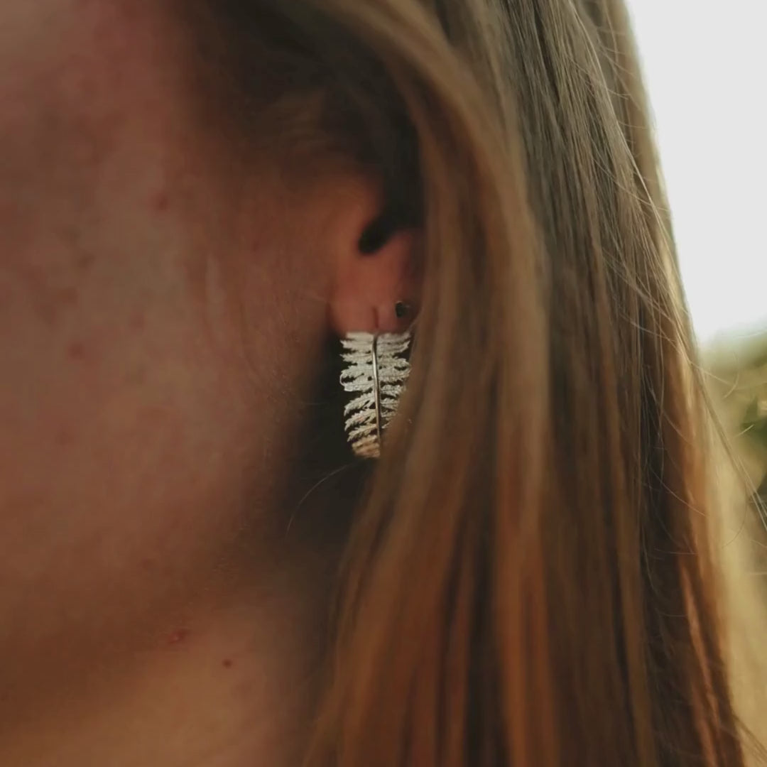Hoop earrings that are in harmony with our enchanting nature and look absolutely stunning – these are our fern hoop earrings. Both hoop earrings are made of silver and delicately designed like the fronds of a fern. In mythology, the fern is considered a mysterious plant associated with elves – it is said that the fern leads to the elves.