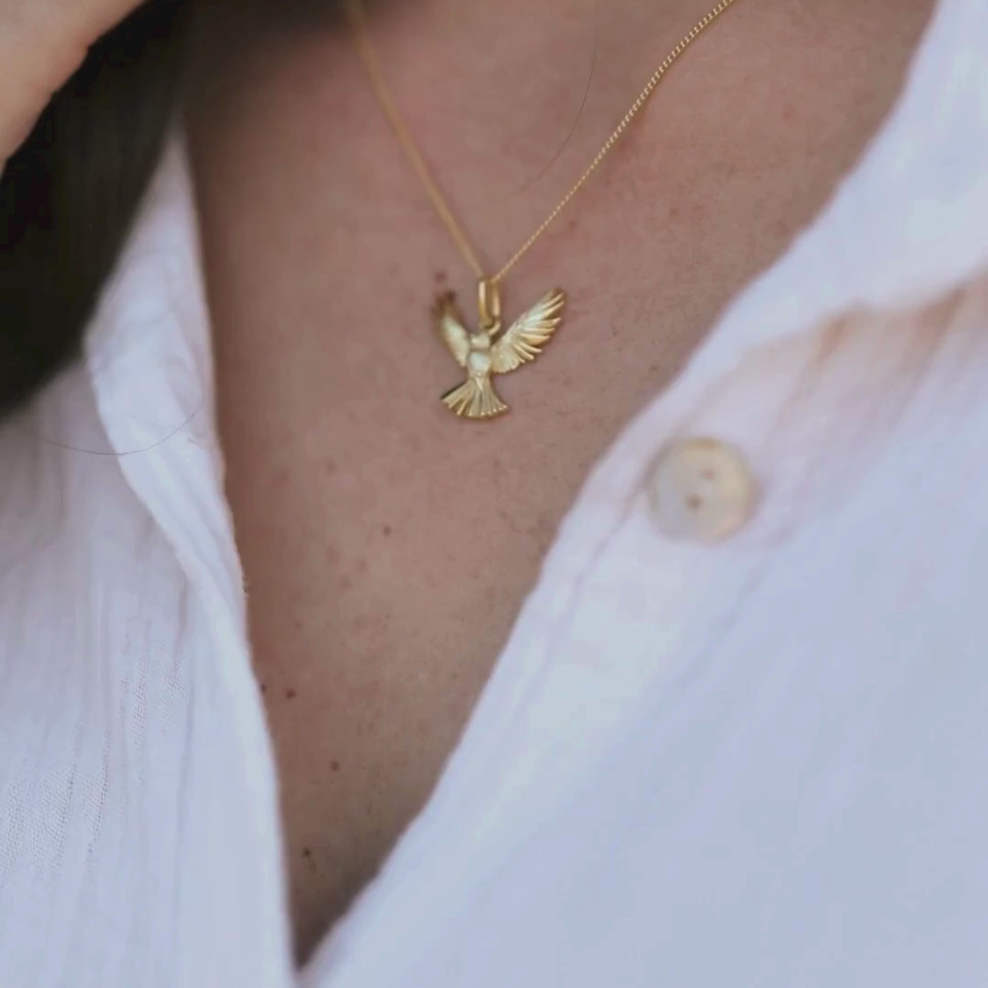 Wenn die Vogelwelt eine grenzenlose Begeisterung in Dir auslöst, darf unser Anhänger Linette in Deiner Schmucksammlung auf keinen Fall fehlen. Freiheit, Kraft und Anmut – daran erinnert uns dieses besondere Schmuckstück. Der kraftvolle Vogel mit seinen ausgebreiteten Flügeln kommt dank der schlichten Kette bestens zur Geltung. Der besondere Anhänger ist in einem warmen Goldton gestaltet, der Deine Augen besonders zum Vorschein bringt.