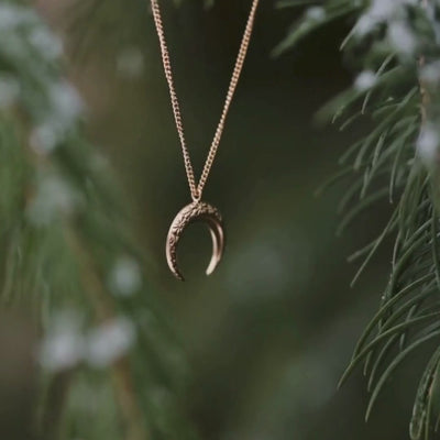 Eine Kette, die unglaublich vielfältig kombiniert werden kann, aber auch alleinstehend das gewisses etwas zum Vorschein bringt: unsere Kette Esmiel. An mystischen Schmuck aus lang vergangenen Zeiten erinnert uns der Anhänger ein verziertes Horn. Die Muster auf dem darauf sind von detailreichen Verzierungen auf alten Buchrücken inspiriert.