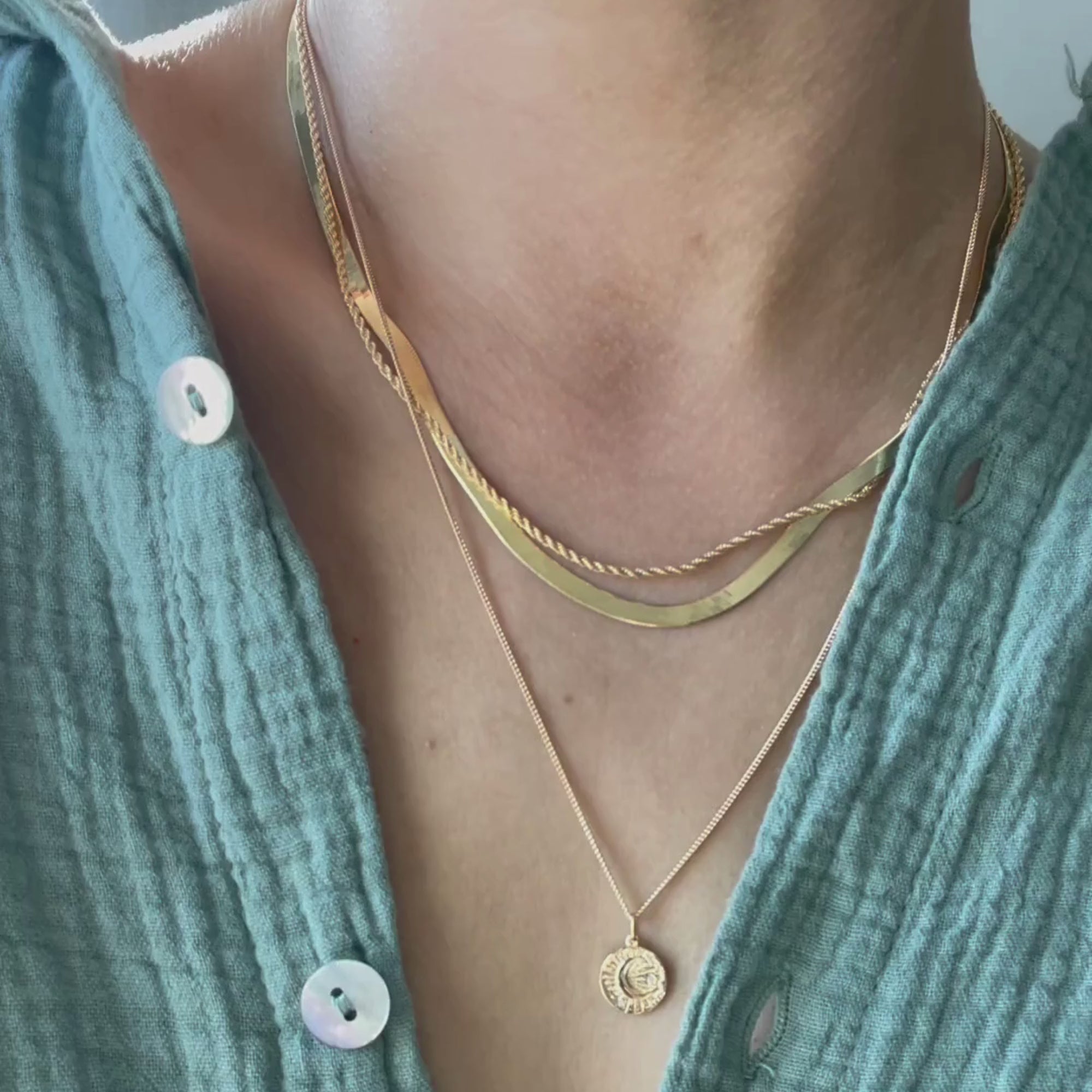 Weich wie Wasser schmiegt sich die Kette Florencia elegant um deinen Hals. Das Herringbone-Geflecht der Kette sorgt für einen zeitlosen Look. So ist die Florencia Kette ein toller Begleiter für jeden Tag oder zu einem eleganten Cocktailkleid an einem Sommerabend. Kombiniere die Kette anderen Schmuckstücken für einen kreativen Layering-Look.