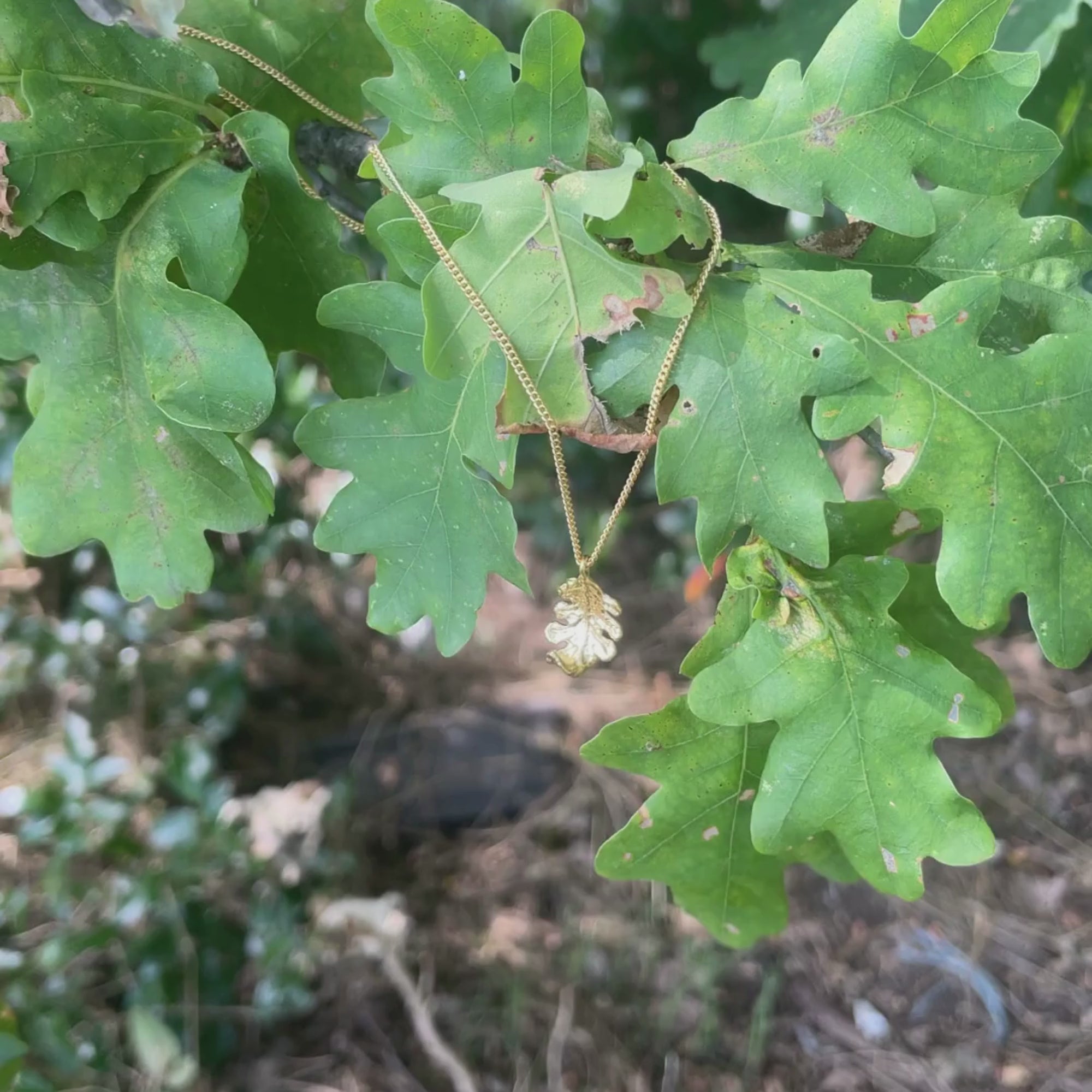 Diese auffallende Kette mit kleinem Eichenblatt ist Dein perfekter Begleiter für jeden Tag. Das vergoldete Blatt der Eiche erinnert uns an herbstliche Wälder mit gelblich und rötlich Blättern. Die Baumart Eiche ist bei uns Menschen schon seit etlichen Jahrtausenden präsent und in vielen Wäldern nicht wegzudenken. Der filigrane, naturnahe Look unterstreicht Dich und Deine einzigartige Persönlichkeit auf dezente Art und Weise.