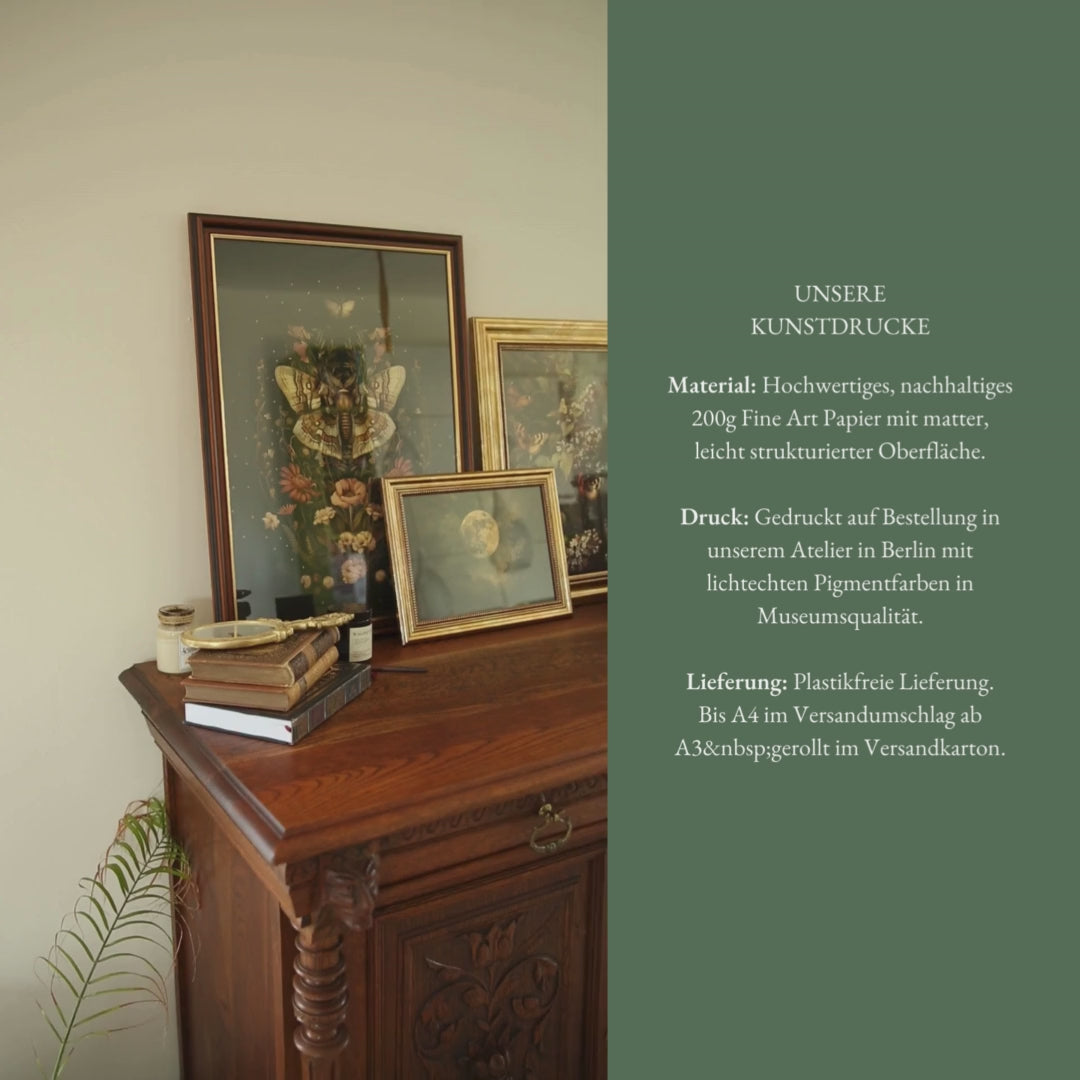 Material: Hochwertiges, nachhaltiges 200g Fine Art Papier mit matter, leicht strukturierter Oberfläche.